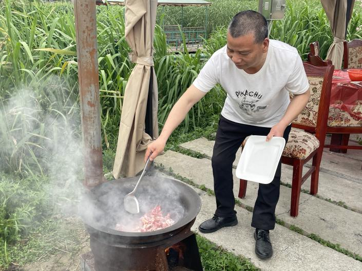 下午一點,大家吃過午飯以后陸續(xù)來到位于石門鎮(zhèn)的白馬軒居現(xiàn)代農(nóng)業(yè)生態(tài)園。先到的人抑制不住激動之情,動手自制魚竿在龍蝦塘邊躍躍欲試。看不出來平時坐辦公室里能與客戶無話不談,來到這邊一個個還可以指點江山。隨著人員到齊,河灘邊逐漸地?zé)狒[起來。